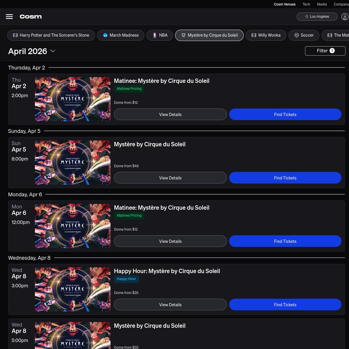 Best for BeginnersLive date listingsMultiple pricing formatsPerformance-led Dome experience